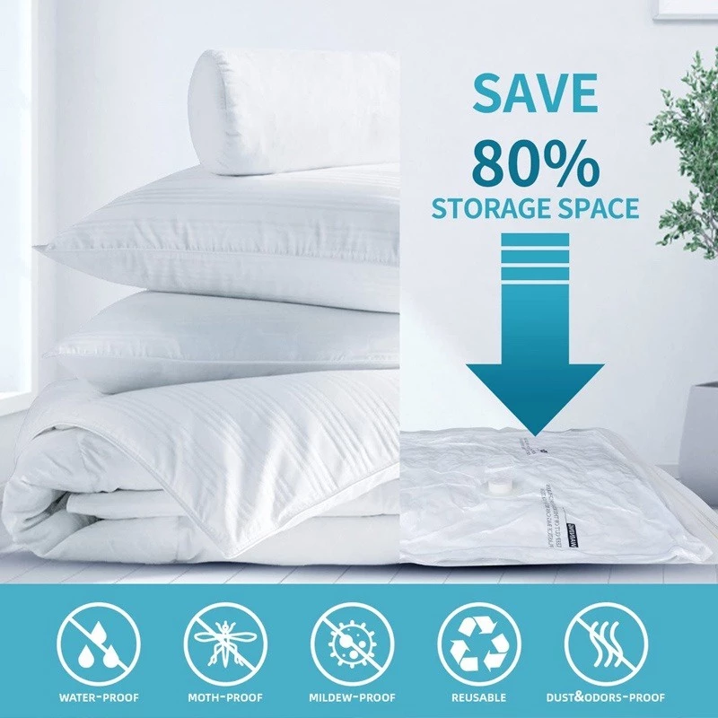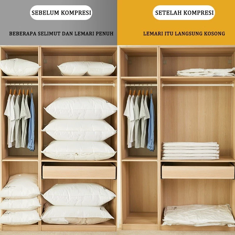 Hemat ruang hingga 80 persen, ciptakan kelegaan dan kerapian sempurna di lemari maupun koper perjalanan Anda.
